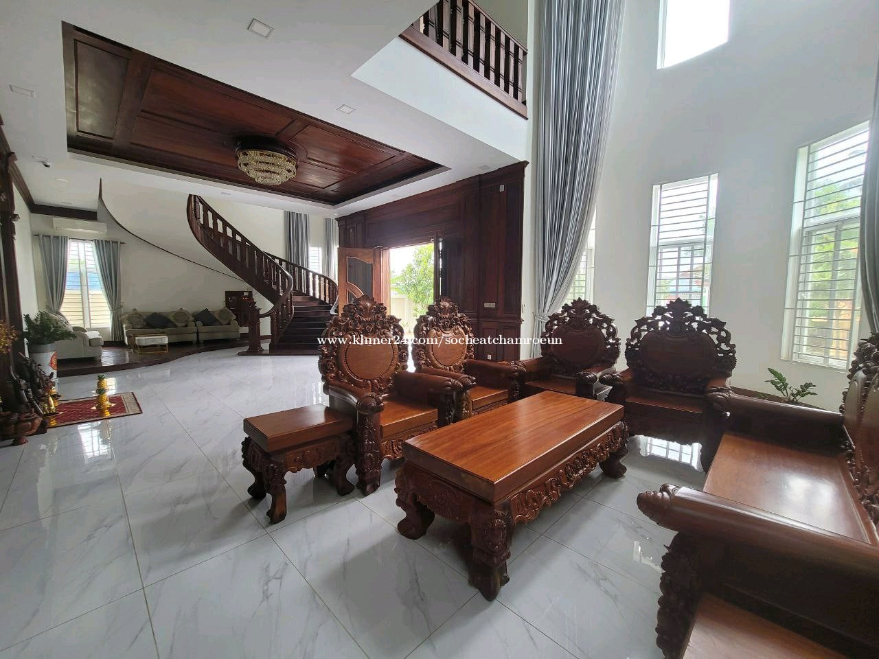 Siingle-Villa krong Takhmao Sale : 1,200,000$ (Nego) Hard tittle Rent : 4,000$ Per month (Nego) Full furniture Land Size : 18m x 100m House Size : 14.5m 16.5m Bedroom : 4+1 Bathroom : 5+1 Living room : 2 Kitchen : 2 ☎️ 061657xxxClick To Call / 0966577xxxClick To Call Telegram : @socheat6168 租金:4000$/月 配套情况:家具齐全 销售 : 1,200,000$ 房产权证:硬卡 房间:5房6卫 厨房 : 2 客厅 : 2 土地面积:18m × 130m 建筑面积:14m × 16.5m