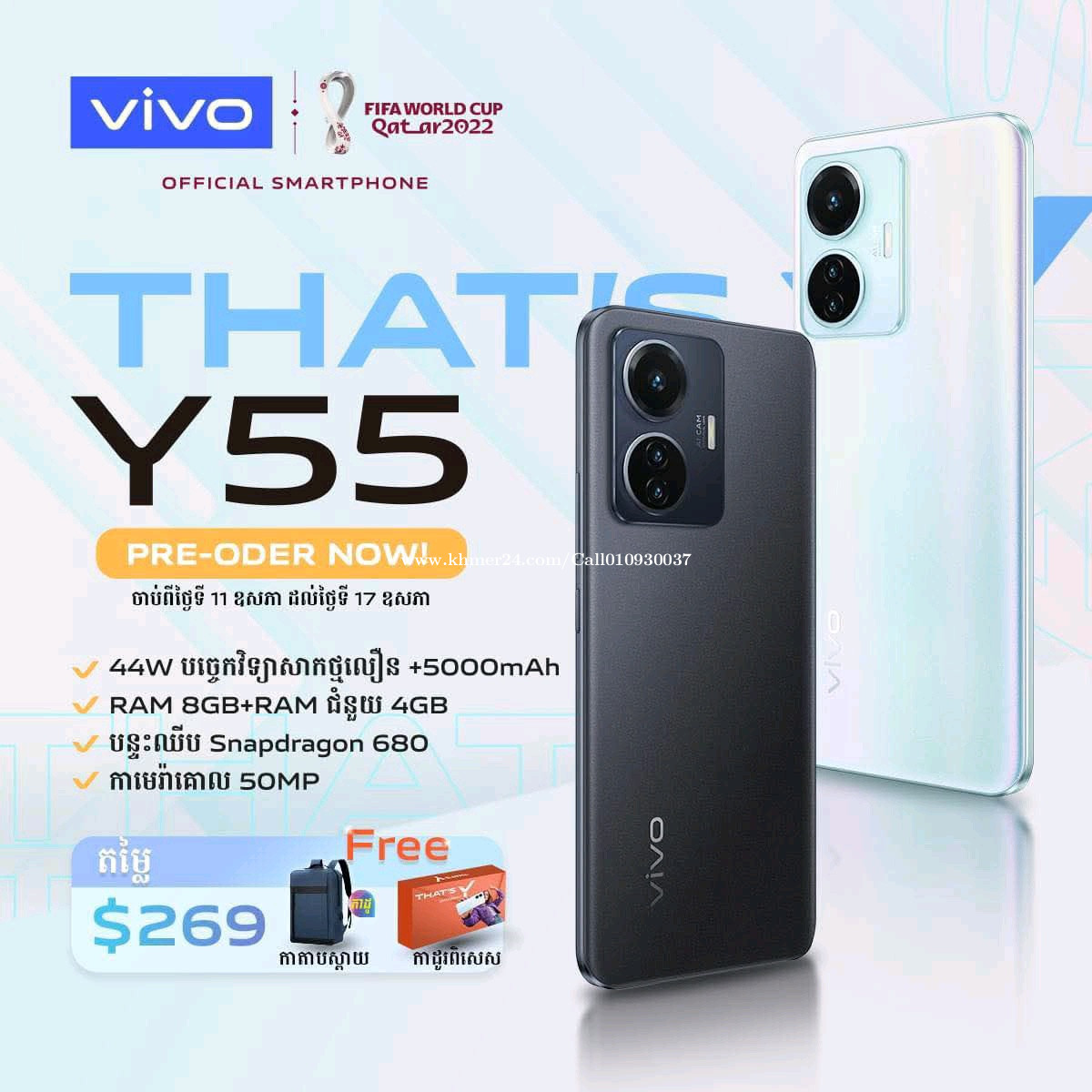 -អីវ៉ាន់ថ្មីប្រអប់ មិនមែនមួយទឹក -Camera 50MP -បន្ទះឈីប Snapdragon 680 -ឆ្នាំងសាកល្បឿនលឿន 44w -ទំហំថ្ម 5000mAh -Ram 8GB+Ram ជំនួយ 4GB -Memory 128GB (អាចបន្ថែម Memory បាន) -មានការថែមជូន Memory card 128GB, power bank 10000mAh, ខេស, ស្រ្គីន -អត់យកកាដូថែម បញ្ចុះតម្លៃថែមទៀត (209$) Telegram 010930xxxClick To Call
