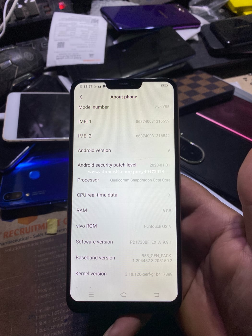 ViVO Y85 ប្រើបានធម្មតា #លក់ : 30$ ដាច់ រ៉េម : 4Gb / ម៉េម៉ូរី : 64Gb សុីម : 2 / អុីនធេីណេត : 4GLTE មានស្គេនមុខ ស្គេនក្រយៅដៃដោះសោរ #ទីតាំង ភ្នំពេញ សង្កាត់បឹងធំ ( ក្បែរផ្លូវរថភ្លេីង រោងចក្រ ម៉ាវ៉ល (ហៅរោងចក្រអាវលឿង) បេីចូលតាមផ្លូវជាតិលេខ3 ចូលតាមផ្លូវជិតស្តុបវត្តស្លែងចូលក្នុង 5គីឡូម៉ែត្រ ឬចូលតាមផ្លូវ តំបន់សេដ្ឋកិច្ចពិសេសក៏បានពីផ្លូវជាតិលេខ4 ចូលក្នុង 6គីឡូម៉ែត្រ 099671xxxClick To Call ( Cellcard ) ( Telegram ) 0886665xxxClick To Call ( MetFone )
