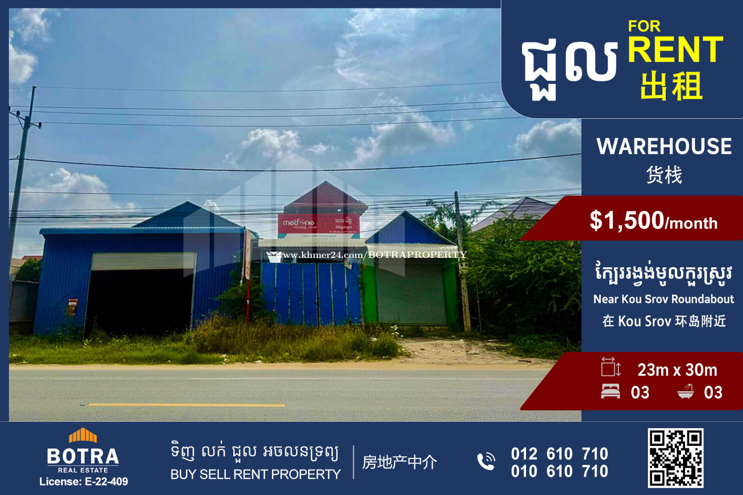 ๐ฃ Warehouse & House for Rent along National Road 2, near Kou Srov Roundabout โข Land Size: 23m x 30m (700m2) โข Warehouse Size: 300m2 โข Flat House: 3Bedrooms | 3Bathrooms ๐ Price: $1,500/month โโโโโโโโโ Contact us now ๐ 012610xxxClick To Call (Cellcard) ๐ 010610xxxClick To Call (Smart) โถ๏ธ t.me/BotraRealEstate (Chat)