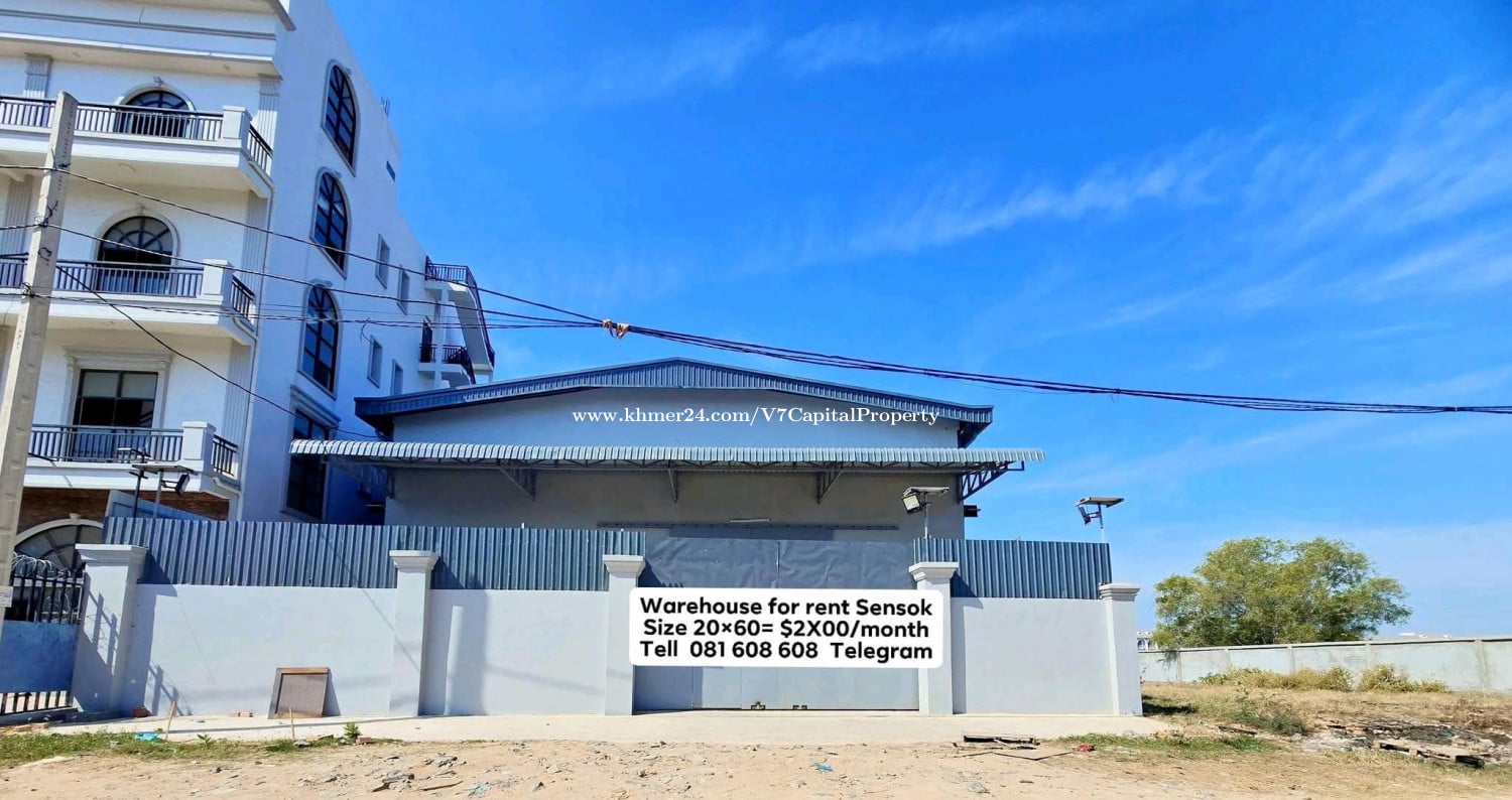 ✔️ ឃ្លាំង សំរាប់ជួល នៅសែនសុខ / Warehouse for rent at Sensok ✔️ ទំហំ / Size / 尺寸 20m × 60m ✔️ តំលៃ / Rent : $2X00 ✔️ បន្ទប់គេង / Bedroom / 臥室 ✔️ បន្ទប់ទឹក / Bathroom / 浴室 2 ✔️ ការិយ៉ាល័យ / Office / 辦公室 1 ✔️ ភ្លេីង / Electric / 電的 63am 3fa * ផ្លូវធំស្រួលចូលឡានធំ ល្អសំរាប់ស្តុកទំនិញ ឬ ខាងដេគ័រ ធ្វើ តុ ទូ ស្លាកយីហោ ការ៉ាស់ឡាន #warehouseforrentsensok #ឃ្លាំងជួលនៅសែនសុខ #ឃ្លាំងជួលរកសុី #ឃ្លាំងជួលស្តុកទំនិញ #warehouseforrent #ឃ្លាំងជួលធ្វើដេគ័រ #ឃ្លាំងជួលបើកសិប្បកម្ម ✔️ 081608xxxClick To Call [ https://t.me/v7info168 ,WeChat, WhatApp, CoolApp, Line ] ✔️ 011608xxxClick To Call