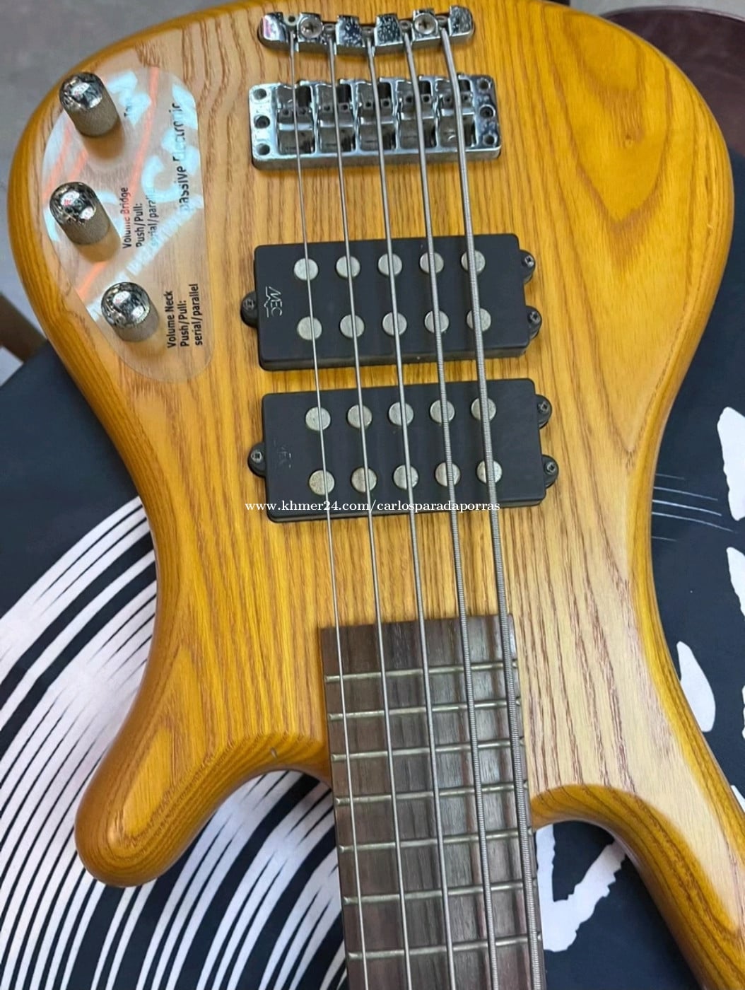 5 string bass. Passive double buck Single coin switch New strings Hard case.