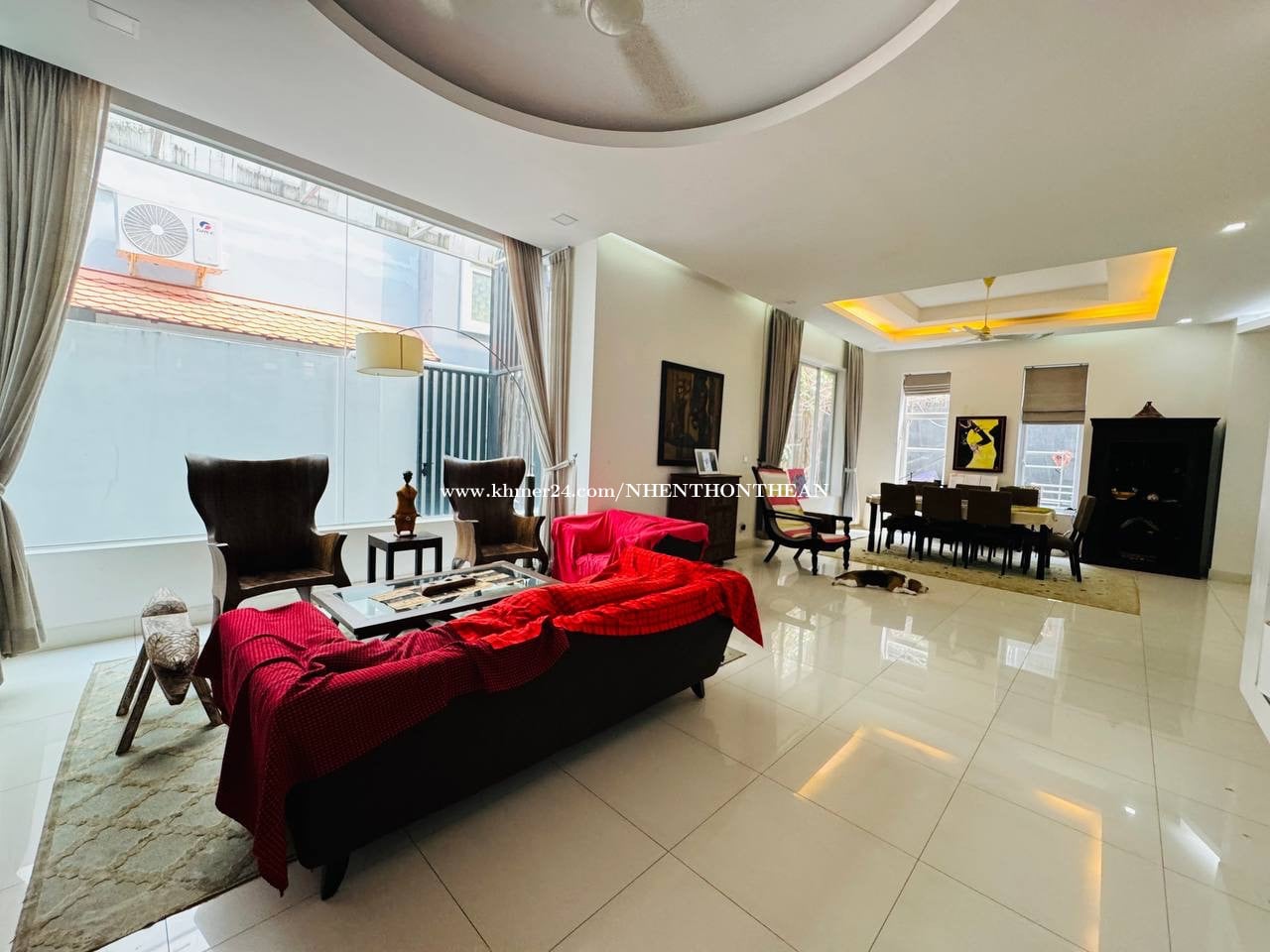 Western style villa for rent in Bassac Garden City Price: $3500 per month negotiable Bedroom:05 Bathroom:06 Fully furnished Parking around 2 cars It is very good for living and office safe area no flooding. Located close to Aeon mall1, CIS, independence Monument and 3 minutes from BKK1.