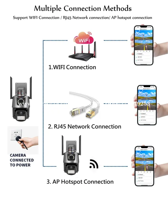 Wifi Camera 2K dual camera > តំលៃ: 40$ ✅ DL0190 🔥 Promotion: យក3មុខឡើង Free ដឹកជញ្ជូន * Outdoor, Indoor, V360pro * Wifi 2.4Ghz * 2+2MP * Wideangle 360°