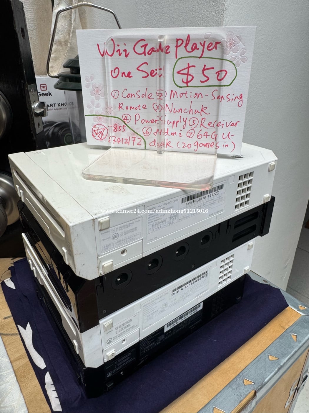 Here's an English sales copy: For Sale: Wii Game Console Set Looking for a fun gaming experience? This Wii Game Player set is up for grabs at just $40. What's included: • Console • Motion - Sensing Remote • Nunchuk • Power Supply • Receiver • HDMI • 64G U - disk (with 20 games inside) It offers an immersive motion - controlled gaming experience. Perfect for family fun or gaming with friends. Don't miss out! Contact: 855 - 87412172