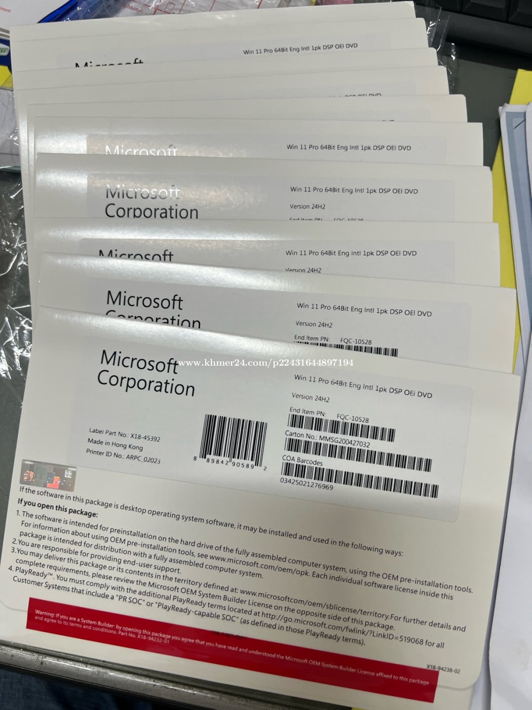Windows 11 Pro OEI (OEM) DVD Package box Item PN: FQC-10528