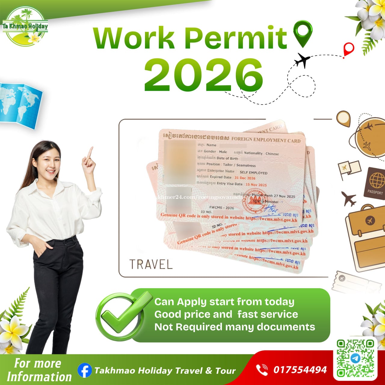 Our Team has high experiences in supporting enterprises/companies with work permit renewal process. We also provides great services with special prices. For more details, contact our expert team that is ready to assist you anytime. ๐ฅNote: Processing begin since 25 November 2025 ๐ฅ ๏ปฟ๏ปฟContact us by: 017/010554xxxClick To Call 077/016581xxxClick To Call Note: If you come by Khmer24 we provides Special Price Our Facebook Page: Takhmao Holiday Travel&Tours