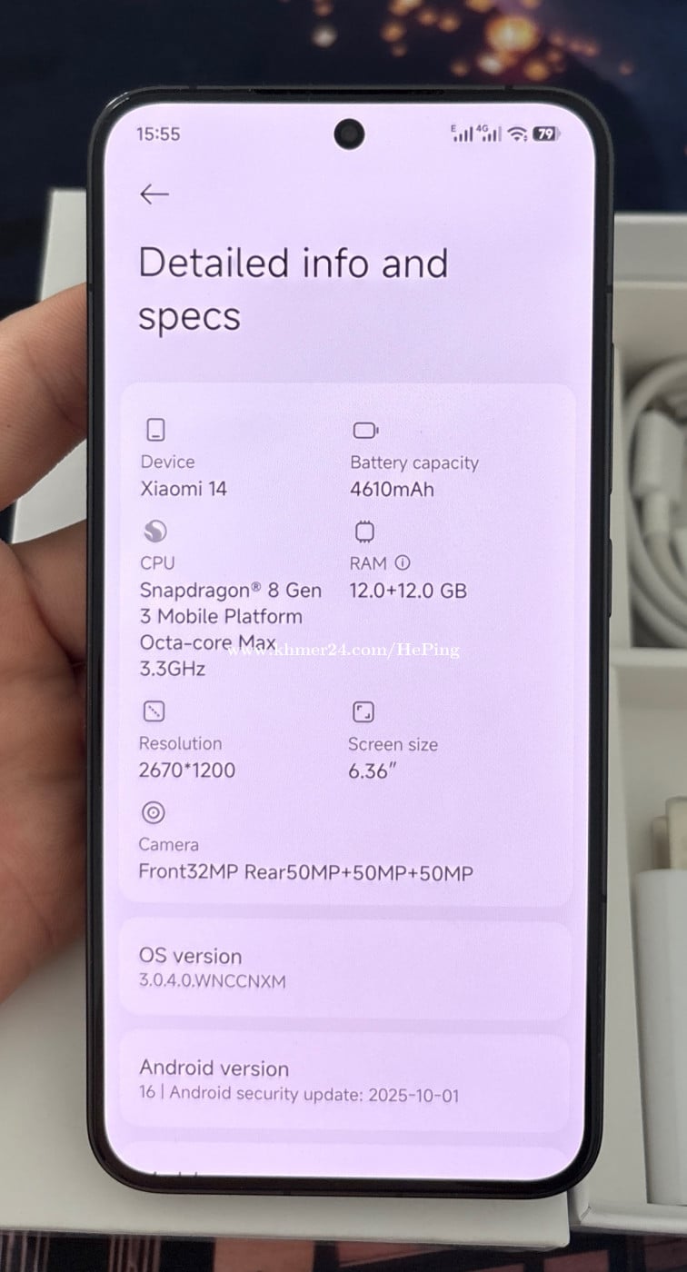 Xiaomi 14 Ram 12+12/256g Fullset.99 new no scratches ,phone + box + original charger and original case sell for 335$ location Sihanoukville telegram @heping486