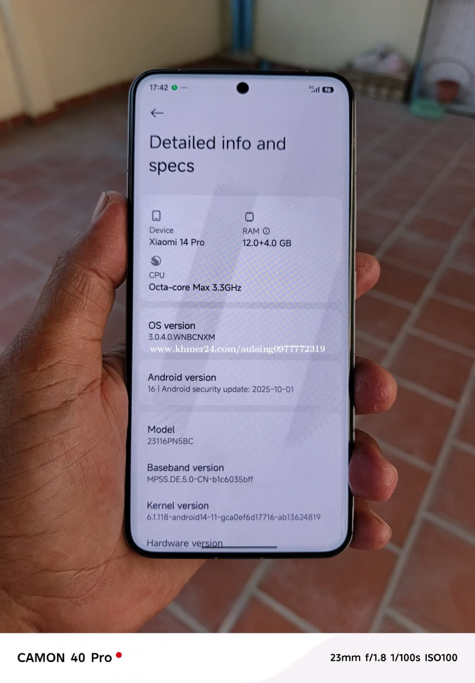 #Xiaomi 14 Pro 12g/256g__CH👉(ទិញដាច់វៃដូរ) #តម្លៃ $345 👉Free ឆ្នាំងសាក ស្រោម ☎️016419xxxClick To Call/0977772xxxClick To Call___ស្ទឹងមានជ័យ 👉https://t.me/moeungnuon (Telegram)