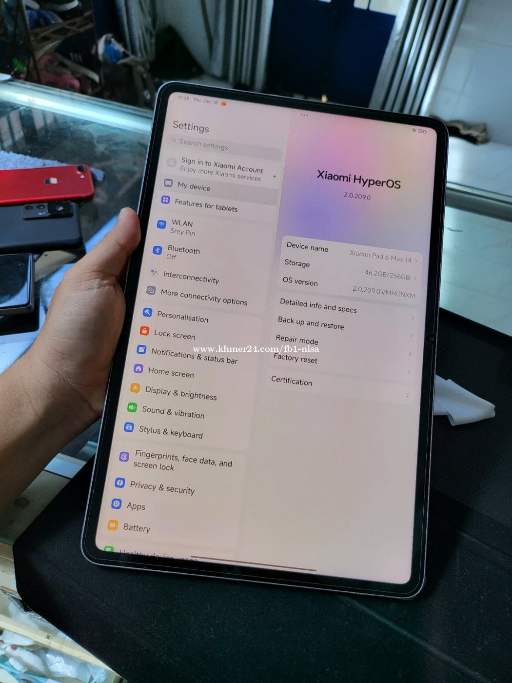 Xiaomi Pad6 Max អេក្រង់ធំស្អាតដូចថ្មី99% Ram8G Rom256G Battery 10000Amh អេក្រង់144Hz សម្លេងច្បាស់ខ្លាំង