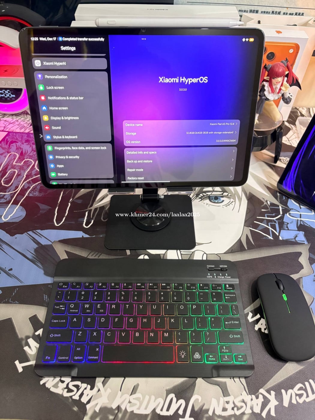 Xiaomi Pad6s Pro Storage: 8+256g Battery: 10,000mAh Charger: 120w Display 12.4inch Refresh Rate 144hz Best for gaming,editor,study… មានប្រអប់ Free screen តម្លៃ:320$