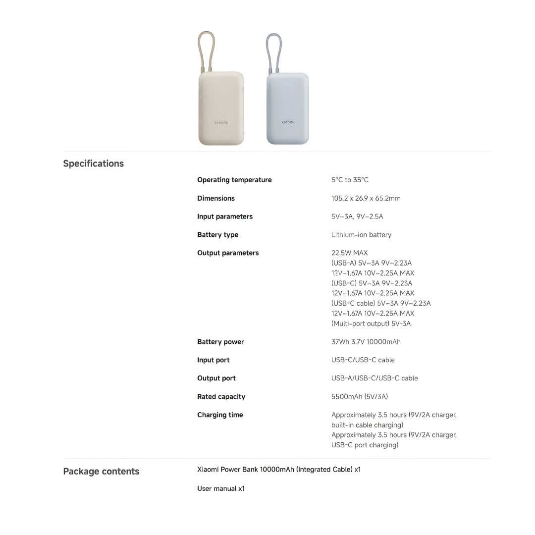 នេះគឺជា Xiaomi Power Bank 10000mAh ដែលមានខ្សែរភ្ជាប់មកជាមួយនិងPower Bankស្រាប់ មានរាងតូចស្រាលរាងស្រួលដាក់តាមខ្លួនមានទំហំថ្មធំរហូតដល់ទៅ 10000mAh មាន2ពណ៌សម្រាប់ជ្រើសរើស ពណ៌ស និង ពណ៌ខៀវ 💲តម្លៃត្រឹមតែ 25$ ប៉ុណ្ណោះ 🛡 ធានារយៈពេល 6 ខែ 🛵ដឹកជញ្ជូនដោយឥតគិតថ្លៃទូទាំងប្រទេស 🔘លក្ខណៈពិសេស ☑️មានរូបរាងតូចងាយស្រួលដាក់តាមខ្លួន នឹងសមត្ថភាពថ្មធំ ☑️មានថាមពលដល់ទៅ 33W សាកបានលឿន ☑️មានខ្សែរភ្ជាប់មកជាមួយ Power Bank ស្រាប់ ☑️ភ្ជាប់មកជាមួយខ្សែរ USB-C ងាយស្រួលប្រើប្រាស់ ☑️មានកន្លែងសាកដល់ទៅ 3 រុនអាចសាកបានច្រើនក្នុងពេលតែមួយ ☑️មានស្រទាប់ការពារកម្តៅប្រឆាំងនឹងសីតុណ្ហភាពខ្ពស់