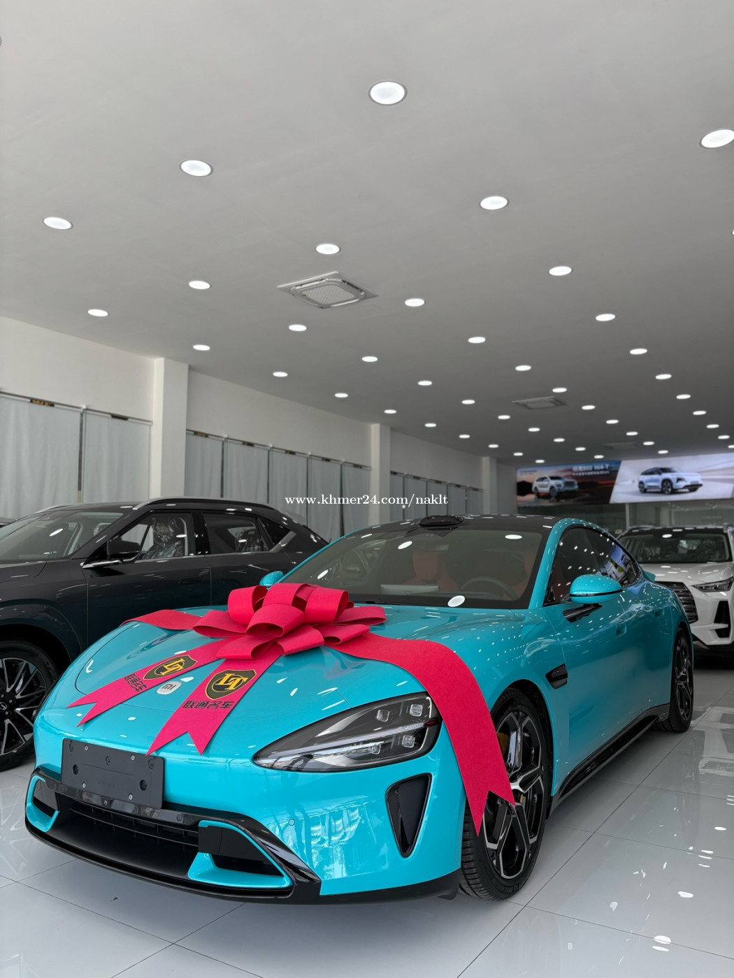 Xiaomi SU7 800KM Max 前电动机马力កំលាំងសេៈម៉ូទ័រមុខ: 299 Ps 前电动机扭矩កំលាំងរមួលម៉ូទ័រមុខ: 338 N•m 后电动机马力កំលាំងសេៈម៉ូទ័រក្រោយ:374 Ps 后电动机扭矩កំលាំងរមួលម៉ូទ័រក្រោយ:500 N•m 电动机总马力កំលាំងសេៈសរុប: 673 Ps 电动机总扭矩កំលាំងរមួលសរុប: 838 N•m សន្ទុះល្បឿន0—100 km/h:2.78នាទី 最高车速ល្បឿនអតិបរមា:265 km/h CLTC纯电续航អាចរត់បានចំងាយ:800 km 电池容量ទំហំផ្ទុកថាមពល(អគ្គិសនី)ក្នុងអាគុយ:101 kWh 百公里耗电量កំរិតស៊ីភ្លើង:13.7 kWh/100km 快充时间សាកលឿន:រយៈពេល0.32នាទី 对外放电功率អាចបញ្ចេញភ្លើងប្រើបានរហូតដល់:6.6kw 尺寸ខ្នាតរថយន្ត:4997×1963×1440mm 驱动方式ធ្វើចលនាដោយ:ម៉ូទ័រមុខនឹងក្រោយ 质保ធានារយៈពេល:5ឆ្នាំ年或10ម៉ឺនគីឡូ10万公里