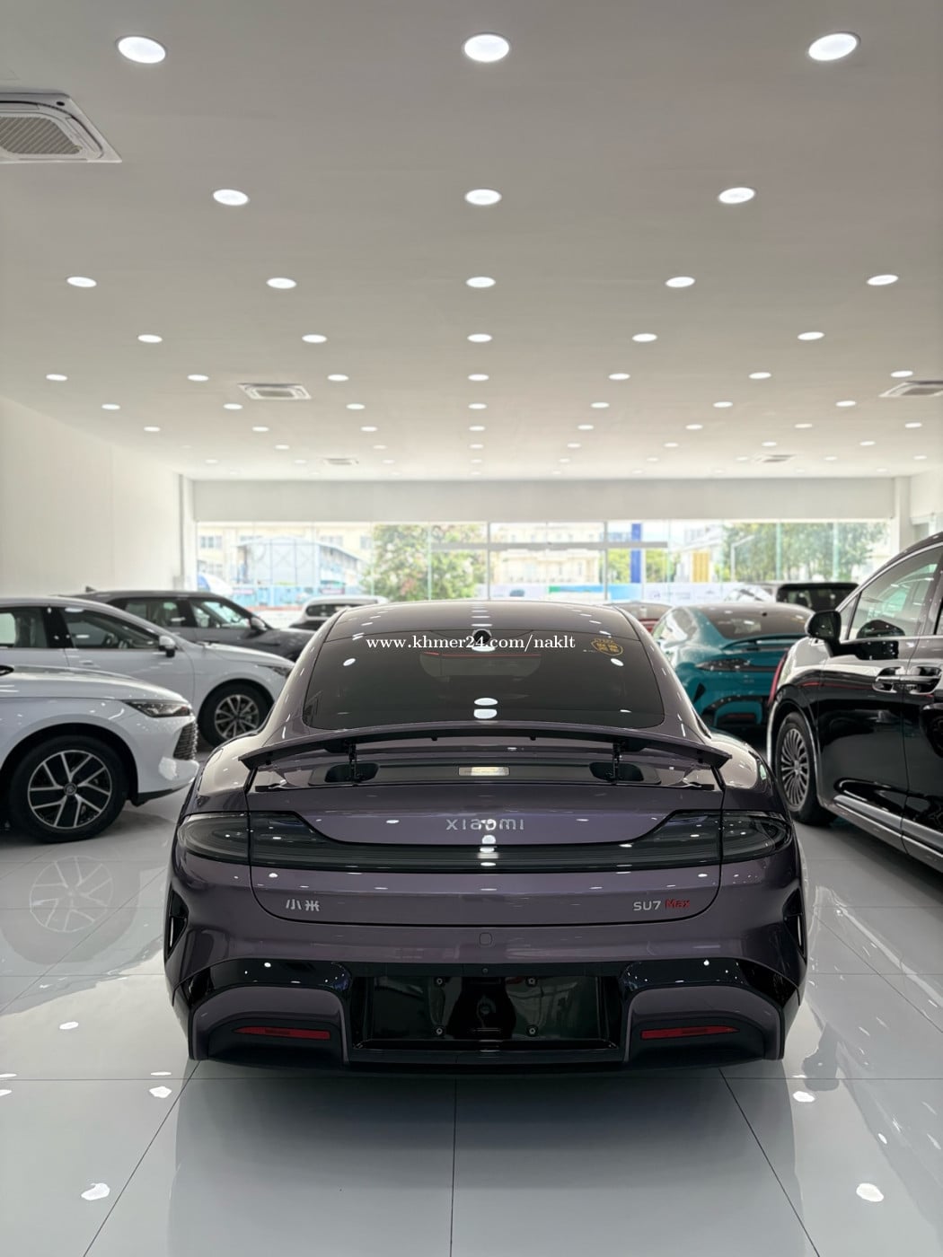 Xiaomi SU7 800KM Max 前电动机马力កំលាំងសេៈម៉ូទ័រមុខ: 299 Ps 前电动机扭矩កំលាំងរមួលម៉ូទ័រមុខ: 338 N•m 后电动机马力កំលាំងសេៈម៉ូទ័រក្រោយ:374 Ps 后电动机扭矩កំលាំងរមួលម៉ូទ័រក្រោយ:500 N•m 电动机总马力កំលាំងសេៈសរុប: 673 Ps 电动机总扭矩កំលាំងរមួលសរុប: 838 N•m សន្ទុះល្បឿន0—100 km/h:2.78នាទី 最高车速ល្បឿនអតិបរមា:265 km/h CLTC纯电续航អាចរត់បានចំងាយ:800 km 电池容量ទំហំផ្ទុកថាមពល(អគ្គិសនី)ក្នុងអាគុយ:101 kWh 百公里耗电量កំរិតស៊ីភ្លើង:13.7 kWh/100km 快充时间សាកលឿន:រយៈពេល0.32នាទី 对外放电功率អាចបញ្ចេញភ្លើងប្រើបានរហូតដល់:6.6kw 尺寸ខ្នាតរថយន្ត:4997×1963×1440mm 驱动方式ធ្វើចលនាដោយ:ម៉ូទ័រមុខនឹងក្រោយ 质保ធានារយៈពេល:5ឆ្នាំ年或10ម៉ឺនគីឡូ10万公里
