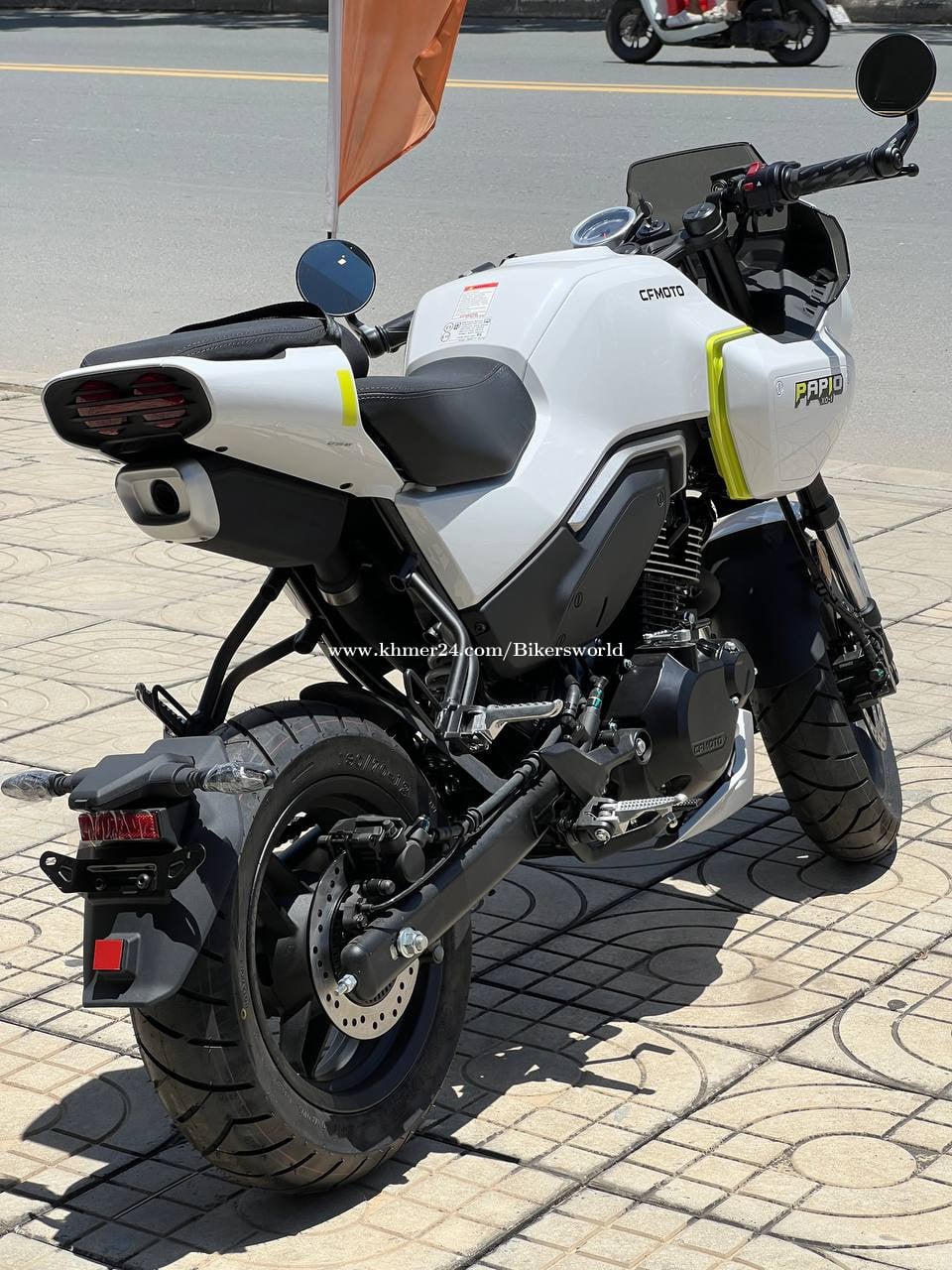 ប្រភេទម៉ាសីន : ម៉ាសីនបញ្ឍរ សីឡាំងមួយ ៤ វគ្គ ទំហំសីឡាំង : 124 cc កម្លាំងម៉ាសីន : 7Kw/8250rpm ប្រអប់លេខ : 6 លេខ ទទឹង បណ្តោយ កម្ពស់ : 1750x742x1020mm ទម្ងន់ម៉ូតូ : 114គីឡូ ចំណុះធុងសាំង : 7 លីត្រ ទំហំកង់ខាងមុខ : 120/70 R12 ទំហំកង់ខាងក្រោយ : 130/70 R12 Engine Type : Single cylinder, 4-stroke, Air cooled, Verticle Displacement : 124cc Bore x Stroke : 57 x 49.4mm Maximum Power : 7kW/8250rpm Maximum Torque : 9.41N.m/6250rpm Fuel System : EFI Transmission : 6-speed