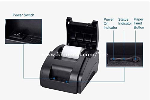 - It uses direct thermal printing (no ink or toner required). - The printer handles paper rolls of ≈ 58 mm width (paper width: 57.5 ± 0.5 mm) and prints at a maximum speed of about 90 mm per second - Print resolution / density is roughly 384 dots per line, which is typical for POS / receipt printing. - It connects via USB, making it easy to hook up to a PC or POS system. - It’s designed to be compact, lightweight, and easy to use — ideal for small counters, checkout desks, cafés, or retail stores.