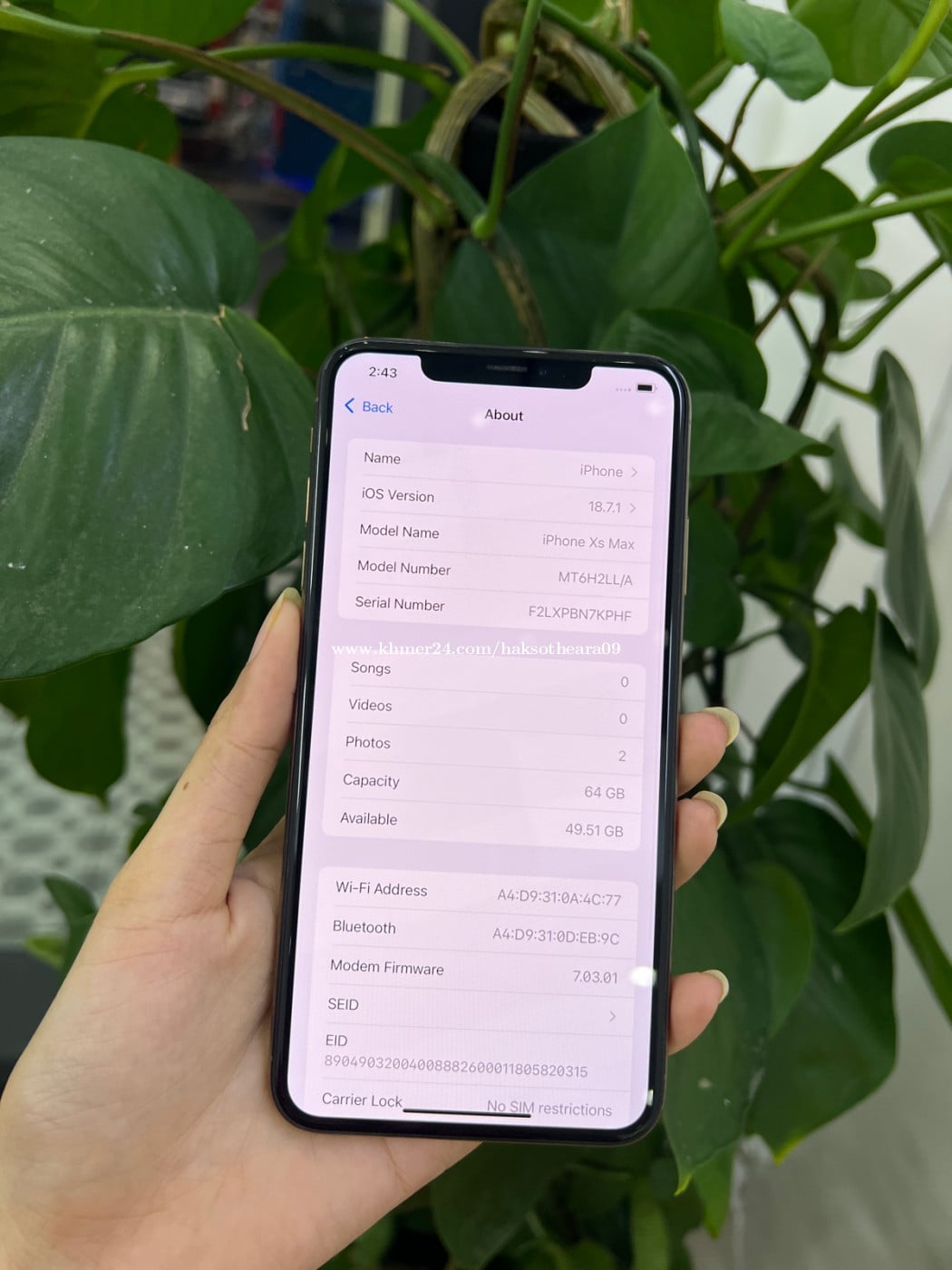 iPhone XS Max 64G មួយទឹកស្អាត99% តម្លៃពិសេស220$ របស់កំរនិងមានតែគុណក៍មិនអន់ដែរចាស🥰🥰