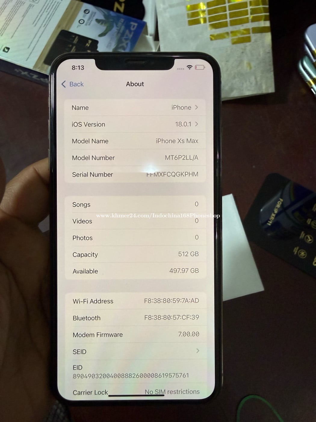 Xsmax 512g ស្អាតសានុំ 98% មានស្កេន lcd ស៊ិន ម៉ាស៊ិនស៊ិន camara ច្បាស់