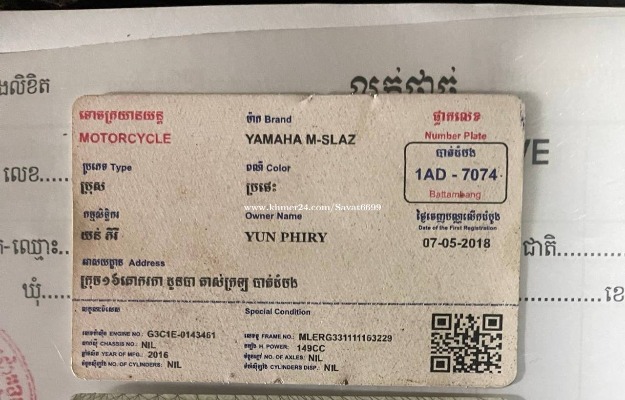 Yamaha Mslaz ម៉ូតូមានពន្ទកាតគ្រីត្រឹមត្រូវម្ចាស់ជិះផ្ទាល់បងៗលក់899$ ម៉ូតូលេងយ៉ាន ស៊ីមាំង ក្បាលស្រាប់ មានស៊ីម៉ាំងស៊ីន ក្បាលស៊ីននៅទាំងអស់ មិនសូវបានជិះទេទុកនៅតែផ្ទះយូជិះម្ដង សម្រាប់អ្នកជិះដូចគ្នាដឹងតែអេម 087376xxxClick To Call https://t.me/Savat6699 អរគុណ🙏❤️🙏