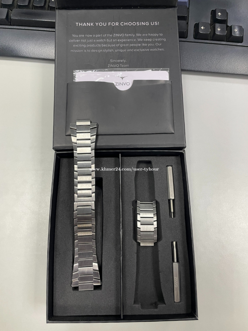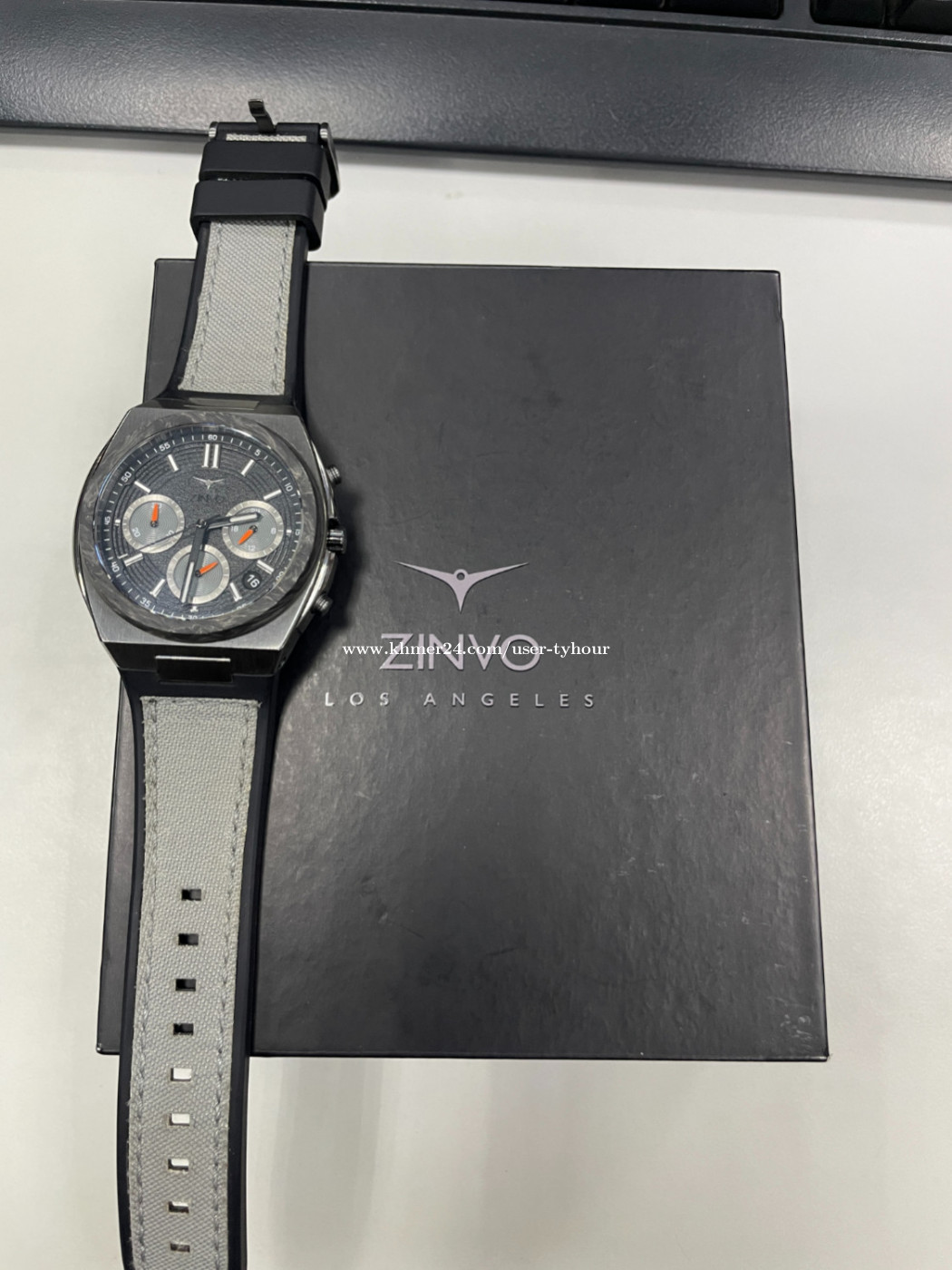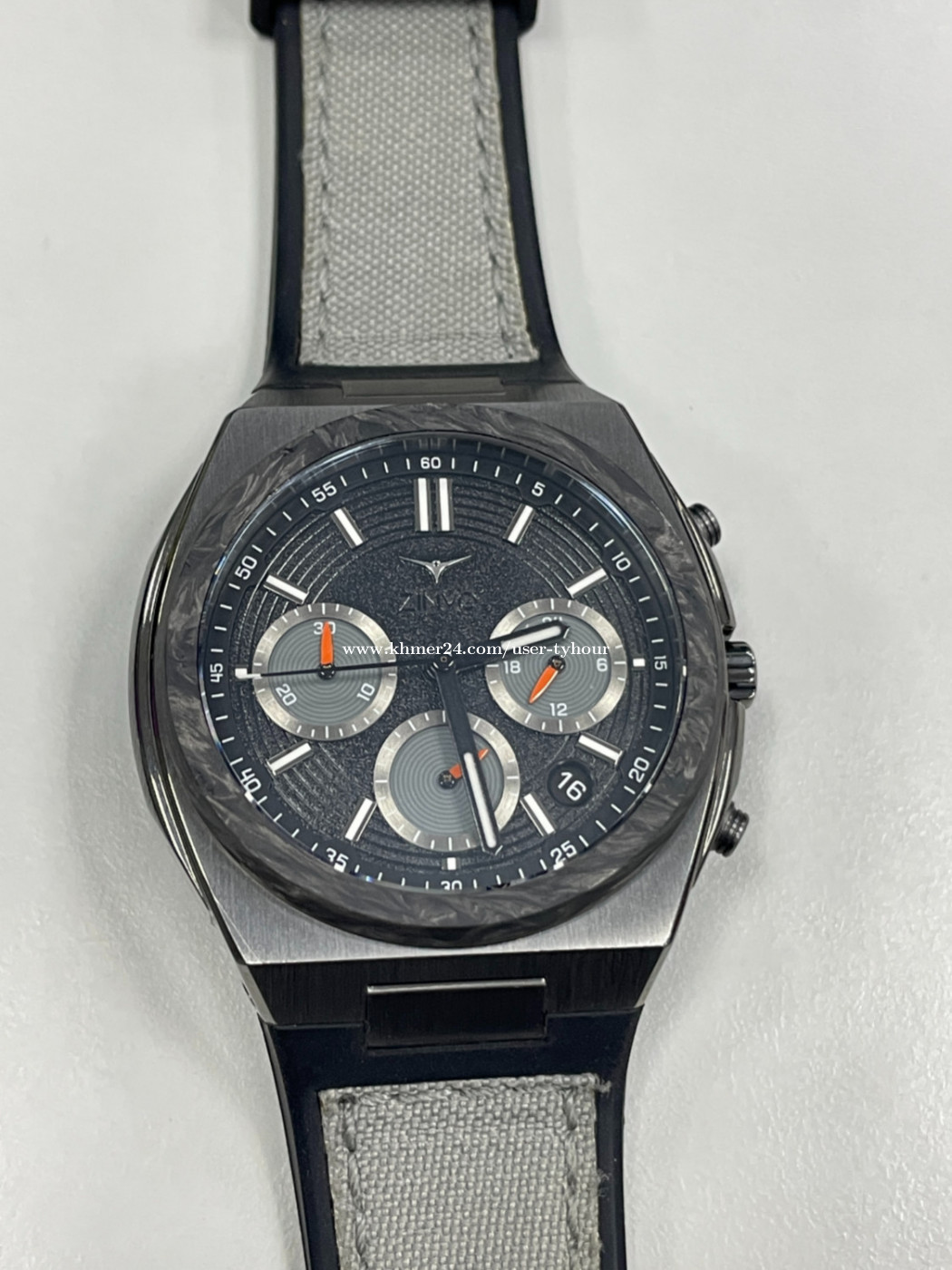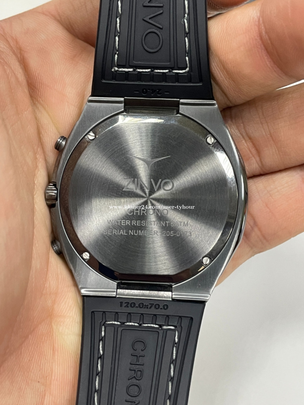 ZINVO CHRONO VENOM មួយទឹក 99% មានប្រអប់ មានខ្សែរពីរ។ SIZE: 42mm x 7mm CASE: Stainless Steel DIAL: Grow in The Dark Index and Hands BRACELET: Stainless Steel GLASS: Scratch-Proof Sapphire Crystal MOVEMENT: Quartz WATER RESISTANT: 5 ATM Waterproof STRAP: Rubber, included